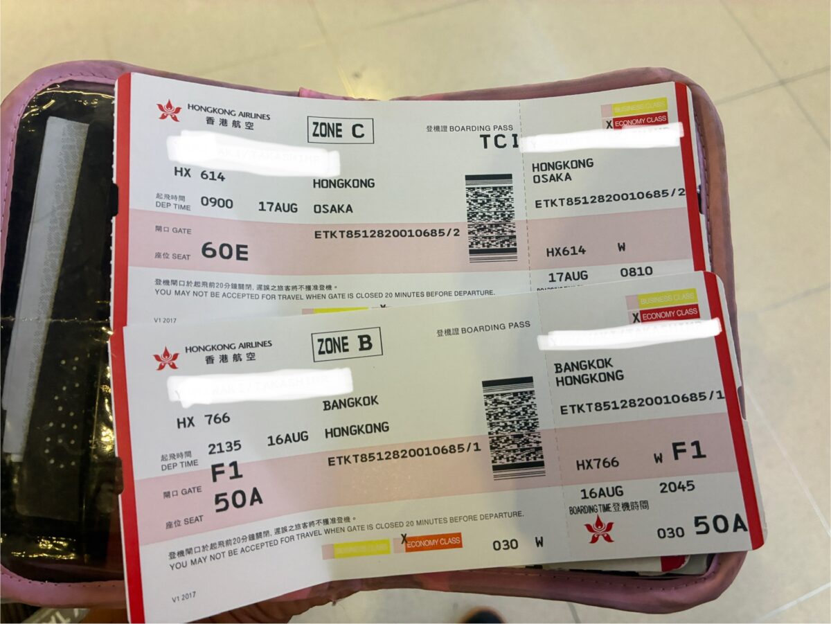 2025年8月に香港航空でスワンナプーム空港から香港経由で関西空港までのフライトに乗ってきたので、その搭乗レビューをお届けします。