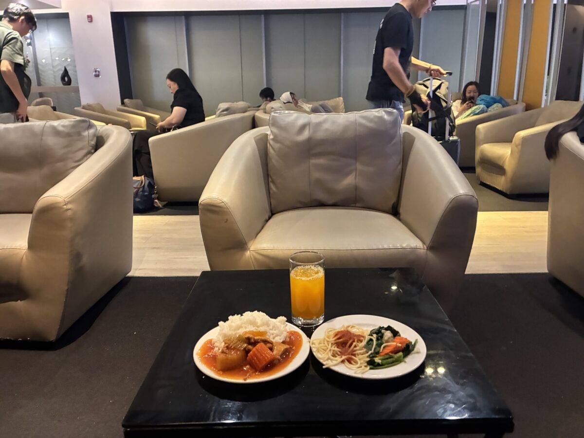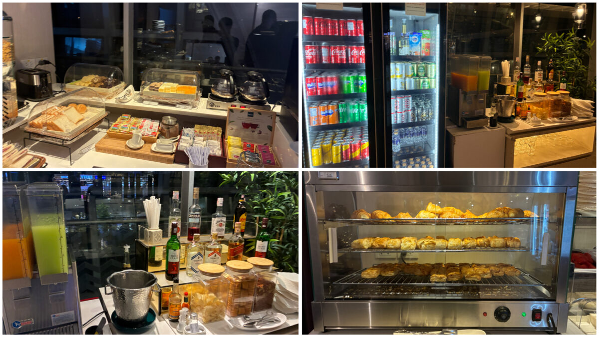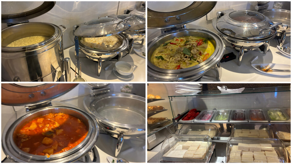 充実した食事と飲み物もたくさんあり、温かいタイ料理(チキンライス、グリーンカレー、麺類など)から、洋食、軽食、デザートまで、内容豊富なブッフェが提供されています。