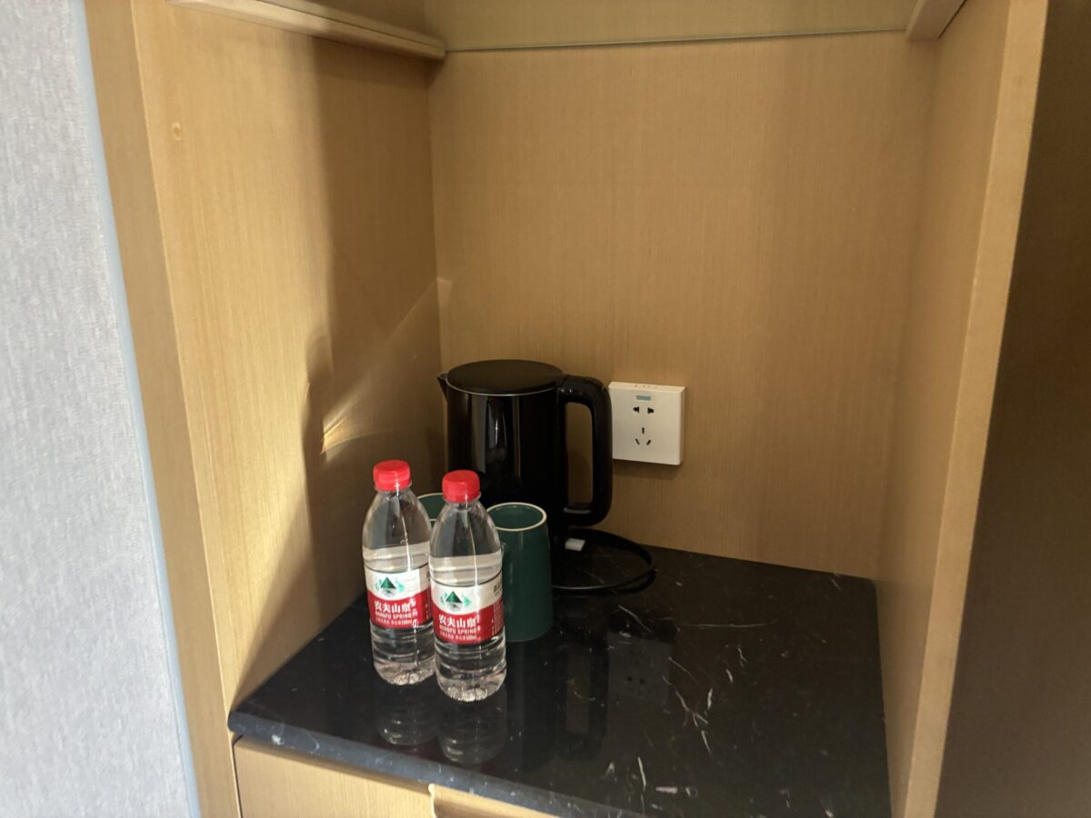 アメニティもシャンプーやボディソープ、歯ブラシなど一通り揃っていました。中国の中級ホテルとしては十分以上の設備と清潔さで、快適に過ごせました。