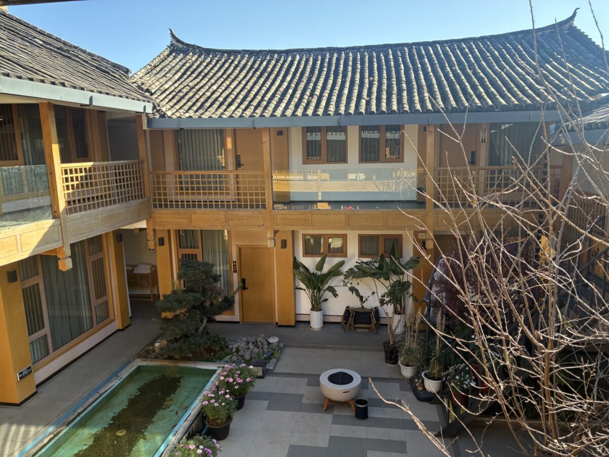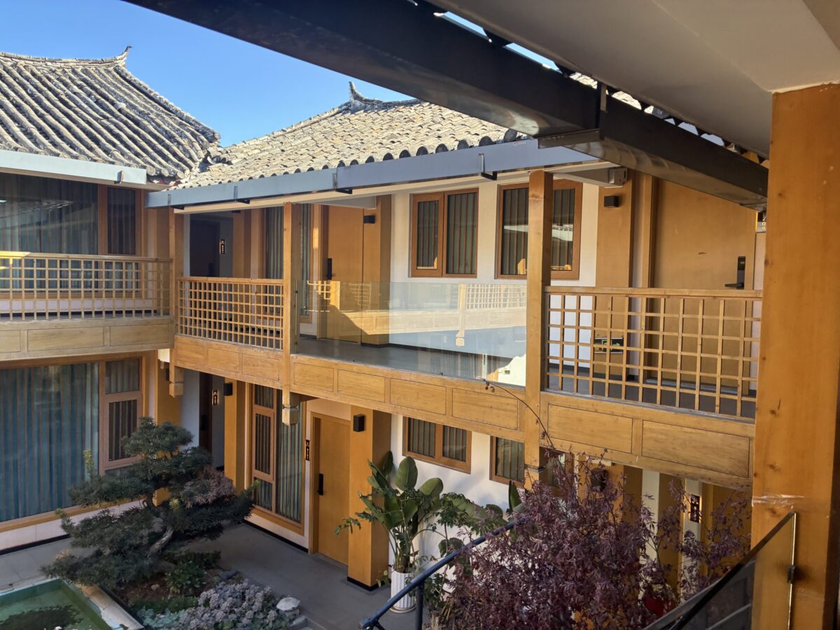 麗江古城にありながら、どこか和風の落ち着いた雰囲気を感じさせる空間で、喧騒を忘れて静かに過ごせるホテルでした。